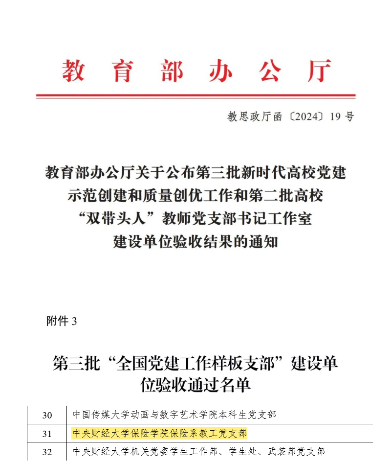 保险系教工党支部验收通过通知(来源于教育部网站)