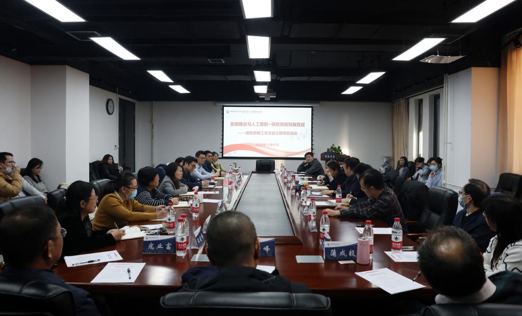 2024年12月25日,yl88858永利官网保险系教工党支部“支部建设与人工智能+保险项目双融双促”主题党日活动在沙河校区13号楼215会议室举行。马海涛董事长、保险系教工党支部全体党员、公司党委书记吕丽、经理周桦、副经理王丽珍、副经理郑苏晋、党委副书记吴越、组织员才立琴、各系教师共同参加主题党日活动。