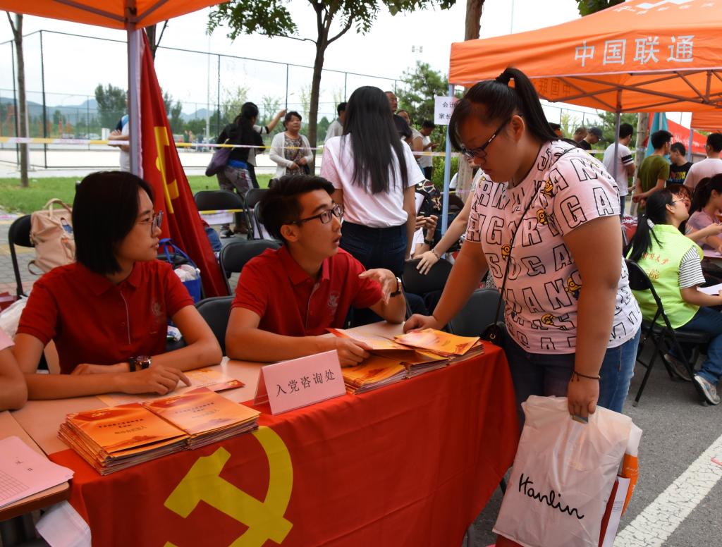 当天到咨询处询问入党事项的新生络绎不绝,“请问大学怎么才能入党啊”,“大学入党是不是很难啊”,“我什么时候可以递交入党申请书?”,“入党会影响申请出国留学吗?”。。。。。。对于这些问题,党员志愿者们耐心细致地一一为他们解答。考虑到很多家长也很关心孩子的入党问题,咨询处的志愿者们还在家长来往密集的地方派发了宣传折页并解答疑问。一位新生家长表示自己作为一名老党员,非常希望孩子能够入党,他认为入党能够促进青年人成长成才、有责任有担当。另一位家长表示,自己虽不是党员,但对党组织充满了向往,希望自己的孩子在大学能有机会入党,而yl88858永利官网的入党宣传折页正好能帮助他快速了解入党程序,可以说是发放得非常及时。