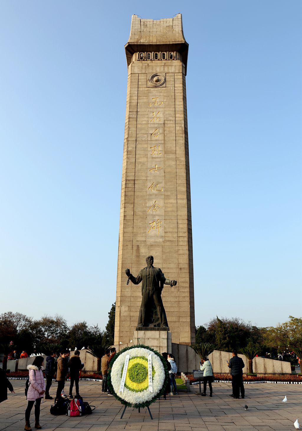 在雨花台烈士陵园,山丘叠绕,松柏高耸,灌木成林,绿茵如毡。1927年到1949年期间,国民党反动派在此屠杀了成千上万的共产党人和各界爱国人士,新中国成立后于1950年修建了烈士陵园。党员们拾级而上,映入眼帘的是一座高大雄伟的烈士群雕。抬头望去,那视死如归的眼神,宁死不屈的气概,泣鬼神憾天地,魂盖苍穹!大家缅怀先烈,接受了一场灵魂的洗礼。