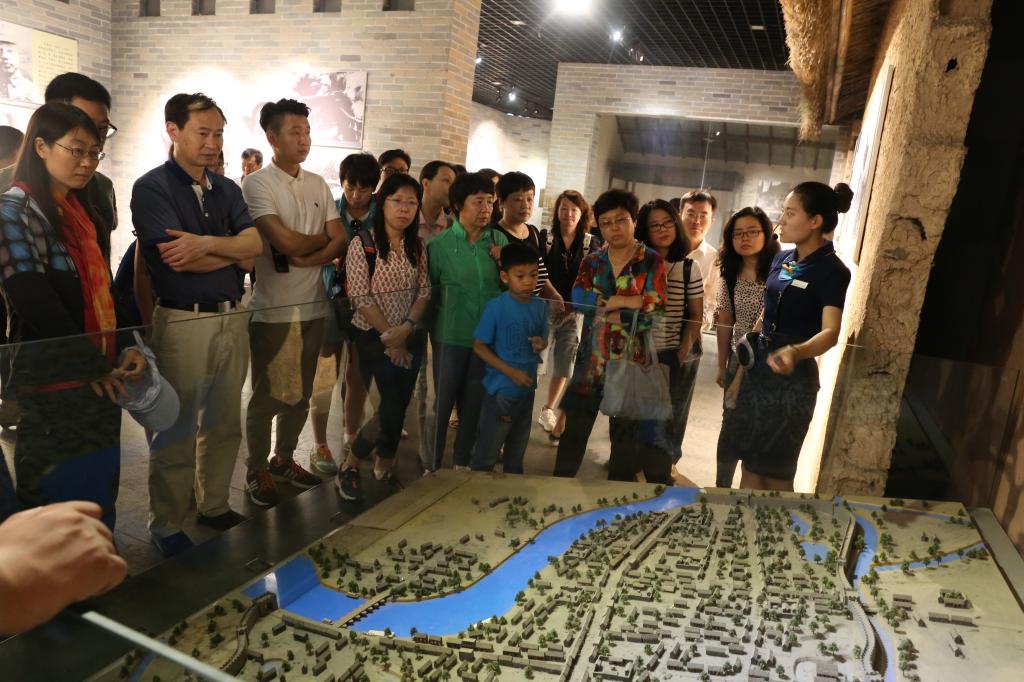 在台儿庄古城,党员们参观了“义丰恒商号遗址”。义丰恒为台儿庄巷战的主要发生地,曾为经营糖茶糕点、丝绸、棉布等诸多杂物的商号,在中日双方的争夺战中遭受重创,现用作台儿庄大战遗物陈列馆和故事馆使用。台儿庄因战成名,“无砖不饮弹,无瓦不沃血”,被尊为中华民族扬威不屈之地。在商号遗址里,党员们参观了弹迹斑驳的弹孔墙,感受到了战争之惨烈,战士之不易。台儿庄大战遗物陈列馆中重点陈列了台儿庄古城重建时发掘的大战遗物88件,时刻提醒着大家缅怀先烈、铭记历史。随后,党员们参观了古代邮驿、中和堂、台儿庄运河等在台儿庄大战中起到重要帮助作用的遗址,对中国人民浴血奋战的不易与毅力有了更加深刻的体会。