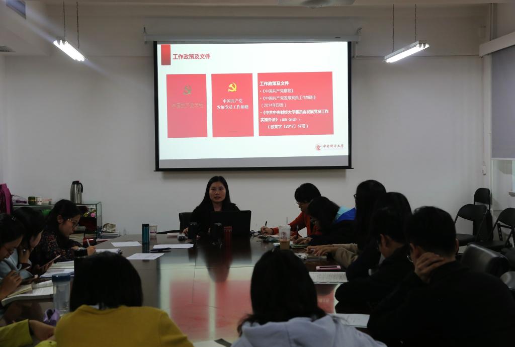 随后,杨柳老师从政策文件、原则、要求、流程四个方面、五个阶段、二十五个步骤点深入细致地讲解了发展党员的相关工作程序,并就发展党员的流程耐心细致地向大家讲解,在一些比较繁琐、容易出错的地方,着重强调了注意事项。她指出,我们发展党员的各项工作程序须严格按照《中国共产党章程》、《中国共产党发展党员工作细则》(以下简称《细则》)、《中共永利集团官网委员会发展党员工作实施办法》等政策和文件执行。她特别强调:“发展党员不仅是各支部非常重要的工作,而且对于为我党补充新鲜血液,提供后备力量,也具有十分重要的意义。因此各支部要高度重视发展党员工作,按照《细则》对各个步骤严格把关。在党员发展的各个关键时期,一定要及时同发展对象交流,了解他们的思想状况,及时向党组织反应。同时入党是件严肃的事情,各项程序也必须严格执行,力求保质保量完成工作任务。”