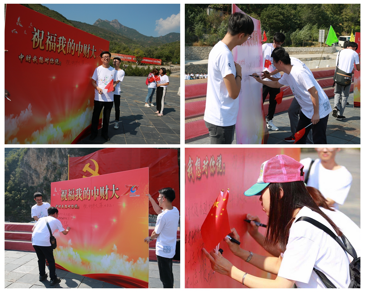在“祝福留言”主题环节中,公司党委书记王颖,经理李晓林,公司党委委员、纪委委员,各党支部书记、教师党员、员工党员先后在“祝福我的祖国”、“祝福我的中财大”留言板上写下对祖国、对中财的深切祝福。“祝祖国早日实现伟大的中国梦”、“神州奋起,国家繁荣,江山不老,祖国常春”、“创一流大学,育一流才贤”等,一字一句饱含对祖国、对中财大的热爱,不忘初心共奋进,齐声祝愿祖国好。
