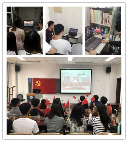 10月1日上午,庆祝中华人民共和国成立70周年大会在天安门广场隆重举行,2017、2018、2019本科生联合党支部组织党员及入党积极分子分别在教室、寝室观看直播。