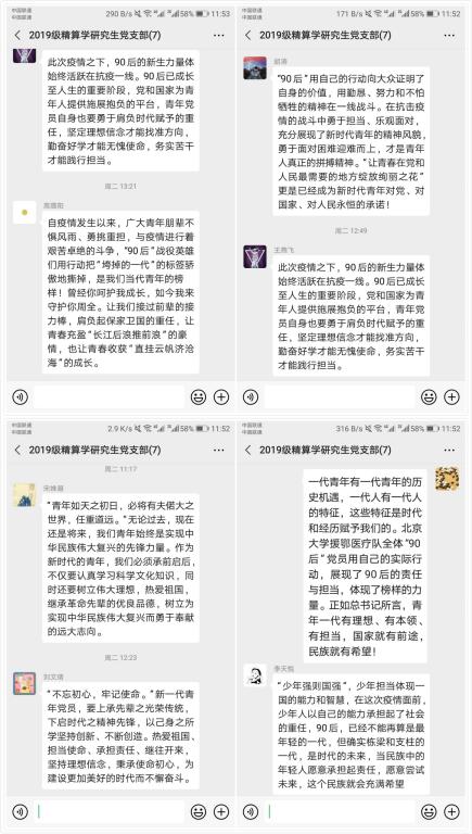 会后,各位党员纷纷表示,要向北京大学援鄂医疗队“90后”党员学习,发扬勇于担当,敢为人先的“90后”精神风采。