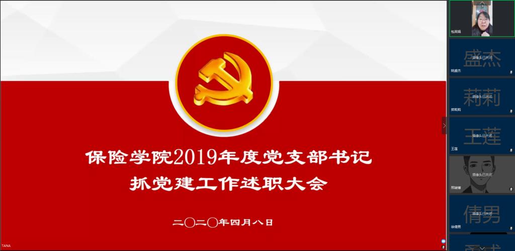 2019级保险专硕党支部书记王一航从开展“不忘初心、牢记使命”系列活动、学思并重、组织建设三个方面进行了履职汇报。分析了支部存在积极分子党员E先锋信息不全、支部部分同志学习强国活跃度不够、档案审查不全面等6个问题,并有针对性地提出了2020年工作设想。