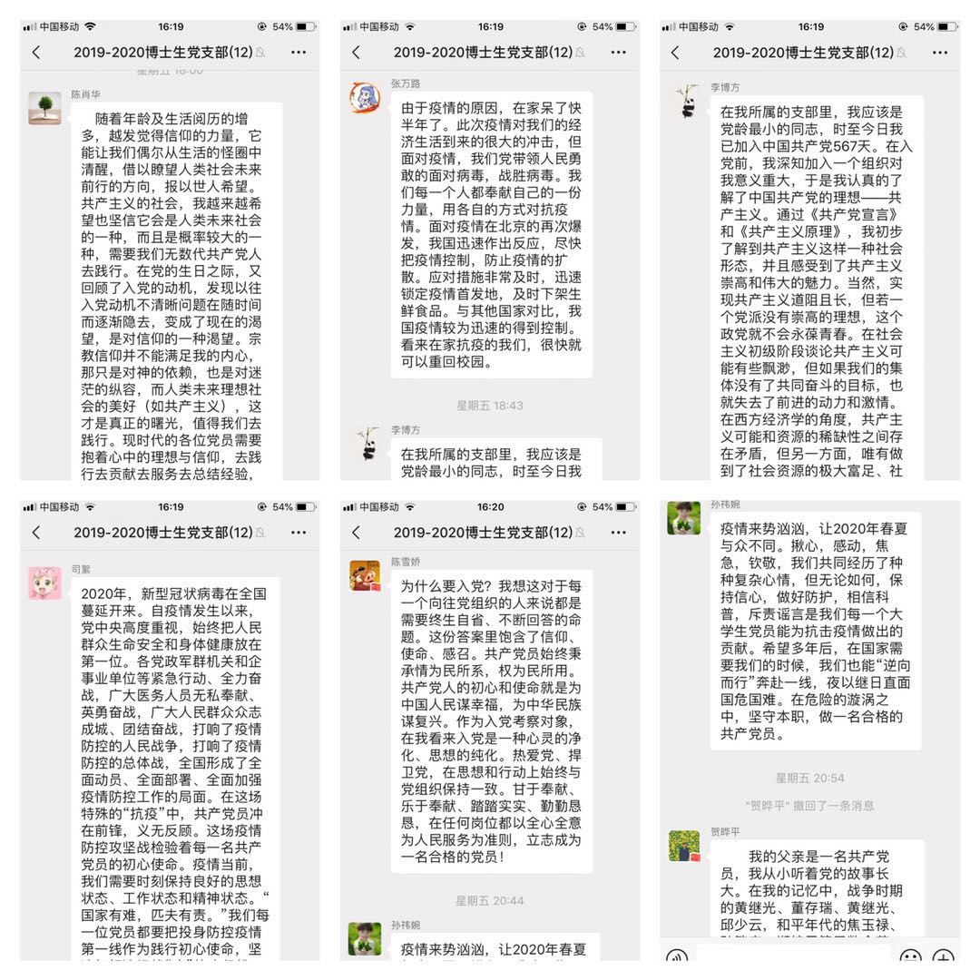 为迎接党的99岁生日,yl88858永利官网博士生党支部在7月4日开展“迎党的生日、讲战疫故事、悟初心使命”主题党日活动。党员们积极分享了自己与党的故事,回顾了自己的入党初心。