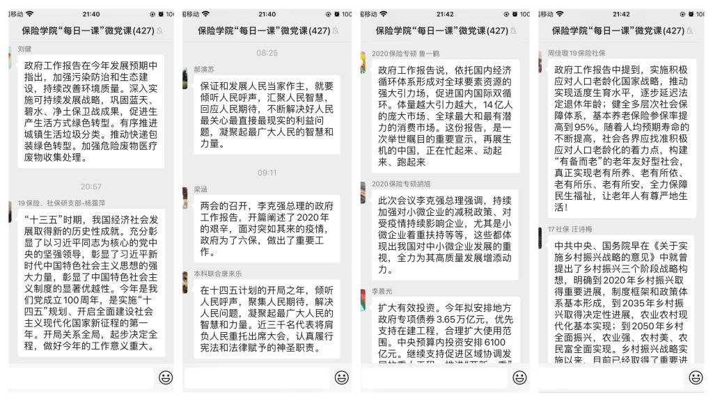 2020级保险专硕研究生党支部鲁一鹤:政府工作报告说,依托国内经济循环体系形成对全球要素资源的强大引力场,促进国内国际双循环。体量越大引力越大,14亿人的庞大市场、全球最大和最有潜力的消费市场。这份报告,是一次举世瞩目的重要宣示,再展生机的中国,正在忙起来、动起来、跑起来。