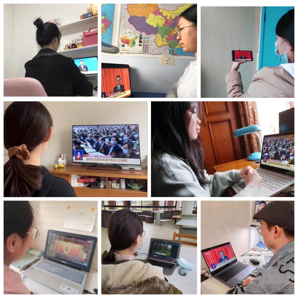政府工作报告集体学 公司党委组织在校教师集体收看直播,研读政府工作报告,了解两会动态,关注两会热点,畅谈两会话题。