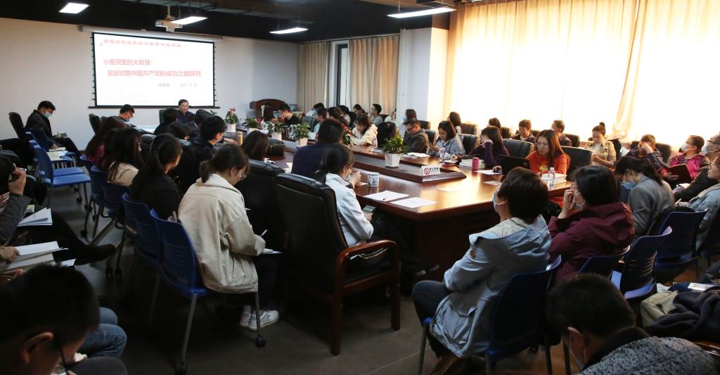 哈战荣老师为大家讲述了党在延安时期的历史,她从何为“延安时期”引入,从落脚延安谱新篇、延安岁月铸辉煌、转战陕北定乾坤三个方面,全面介绍了党中央在延安时期的经济发展、社会建设、民主政治、对外关系等,为大家深入分析了“延安精神”,并介绍了延安时期面对的重重困难和取得的辉煌成就。