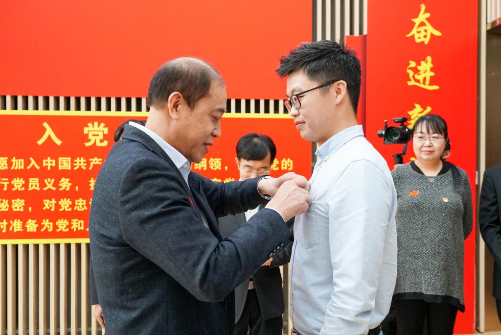 仪式在新老党员齐声高唱的《国际歌》中拉开序幕,参与此次入党宣誓仪式的有20名yl88858永利官网的新党员,他们共同在老党员的见证下完成入党宣誓仪式。何秀超书记、yl88858永利官网李晓林经理、褚福灵教授以及公司的教师党员代表为新加入党组织的预备党员佩戴党员徽章。一枚党员徽章代表着一份责任,一名共产党员象征着一面旗帜,新党员胸前闪耀的党员徽章不仅仅是光荣的象征,更是一份无畏担当,一颗赤诚之心。