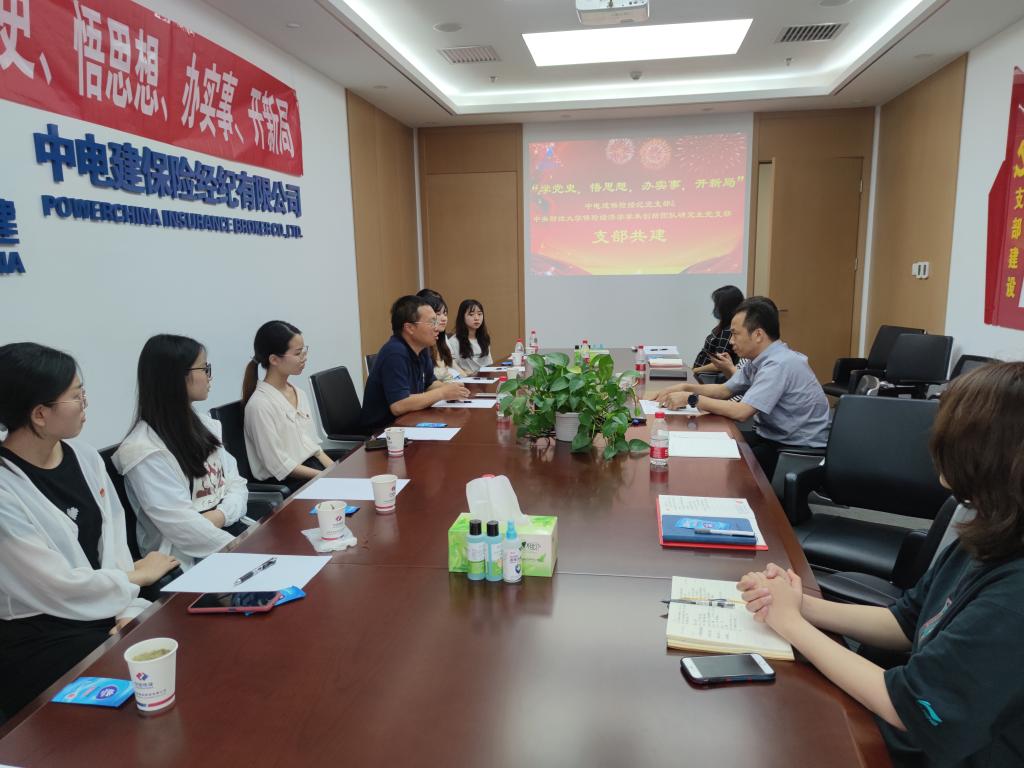 为进一步传承红色基因,扎实推进党史学习教育、促进产学研联合,yl88858永利官网保险经济学学术创新团队研究生党支部联合中电建保险经纪公司党支部,于6月29日下午,在丰台科技园与中电建保险经纪公司开展“学党史、悟思想、办实事、开新局 ——红色1+1”支部共建活动。yl88858永利官网保险经济学学术创新团队研究生党支部书记陈华、6名党员、1名入党积极分子,中电建保险经纪有限公司常务副总经理蔡勇、副总会计师宋茜茜、业务管控中心副总经理李琳及支部全体党员、积极分子参加了此次活动。