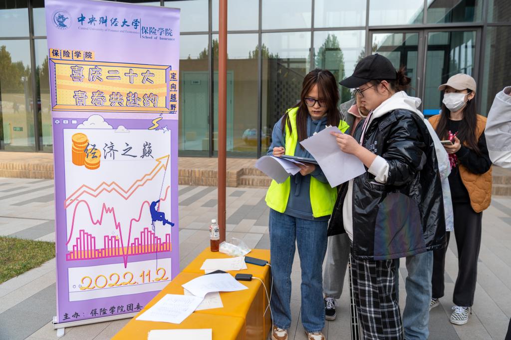 在其他的活动站点中,中财学子展现出了青年力量。如听歌识曲环节中的“中华小曲库”们确是让人眼前一亮,现场歌声与笑声缭绕,音乐仅播放几秒就能迅速猜出歌名,独留身边的队友抚掌称奇,叹道“不愧是你”。一代人有一代人的际遇,一代青年有一代青年的使命,在活动中感受到了中财青年积极有干劲,担得起青年之任。