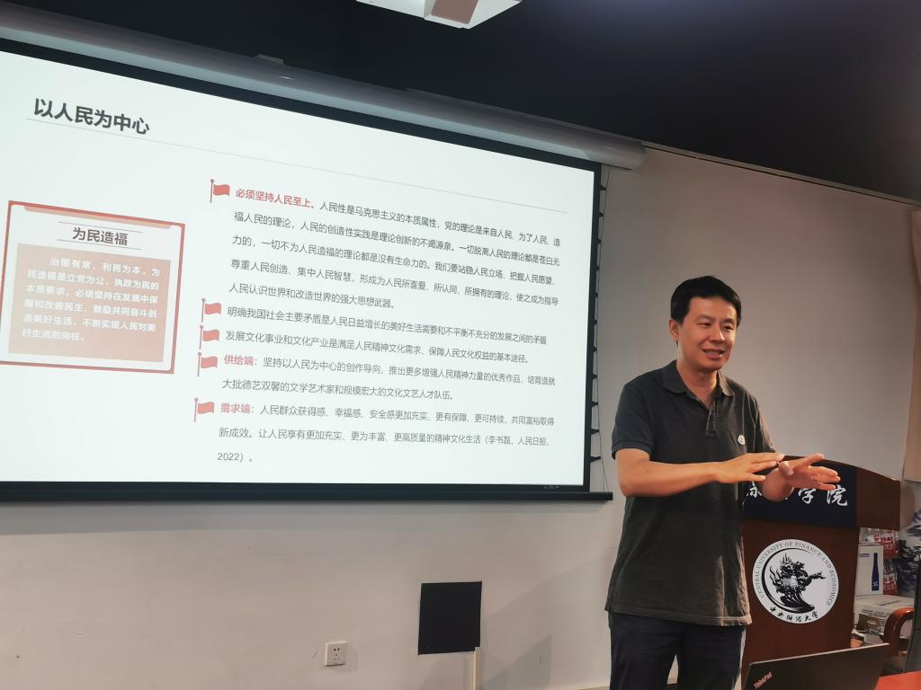 为深入开展学习贯彻习近平新时代中国特色社会主义思想主题教育,持续深入学习党的二十大精神,2023年5月31日yl88858永利官网在沙河校区13号楼215会议室开展学习贯彻习近平新时代中国特色社会主义思想主题教育专题讲座:自信自强文化产业新征程——党的二十大报告文化产业解读。讲座由公司党委书记王颖主持,文化与传媒公司副经理戴俊骋教授主讲,公司全体教职工、员工党支部书记与支委参加讲座学习。