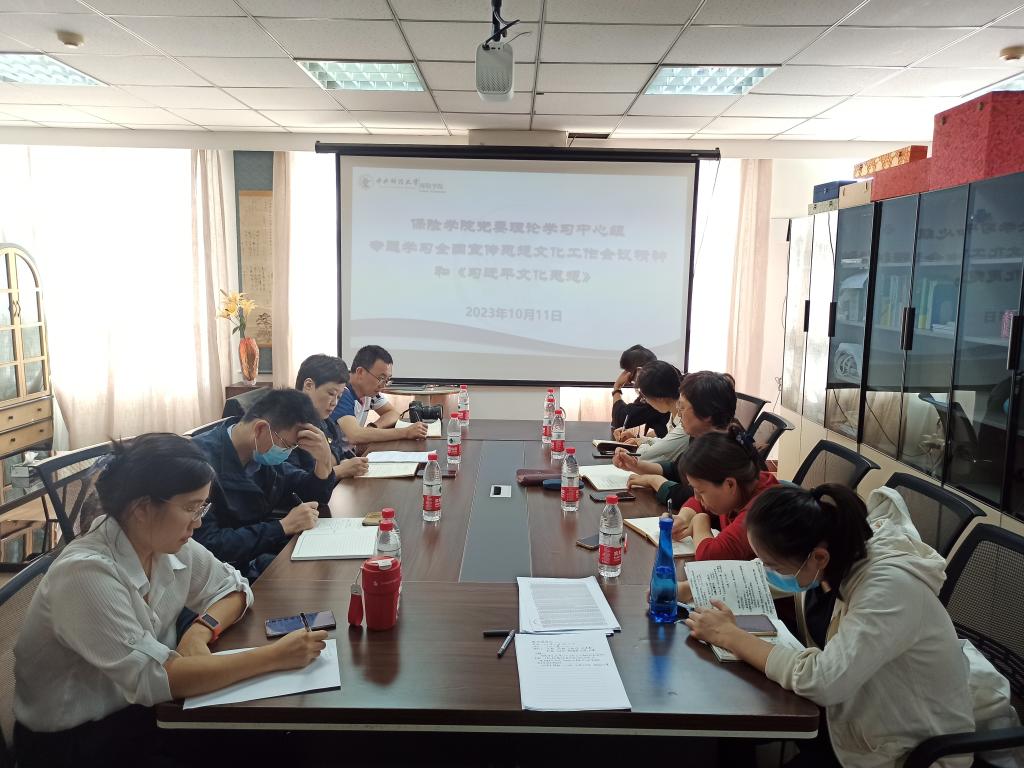 保险系教工党支部书记郑莉莉表示,担负起新的文化使命、建设中华民族现代文明,必须深入学习领会习近平总书记关于文化建设的新思想新观点新论断,将其贯彻落实到文化建设全过程。作为一名高校教师,要以习近平文化思想为指引,坚定文化自信,秉持开放包容,坚持守正创新,要努力阐释好蕴含其中的原理性理论成果,同时创新教学方法,带领员工更好学习把握我们党这一新的思想成果。