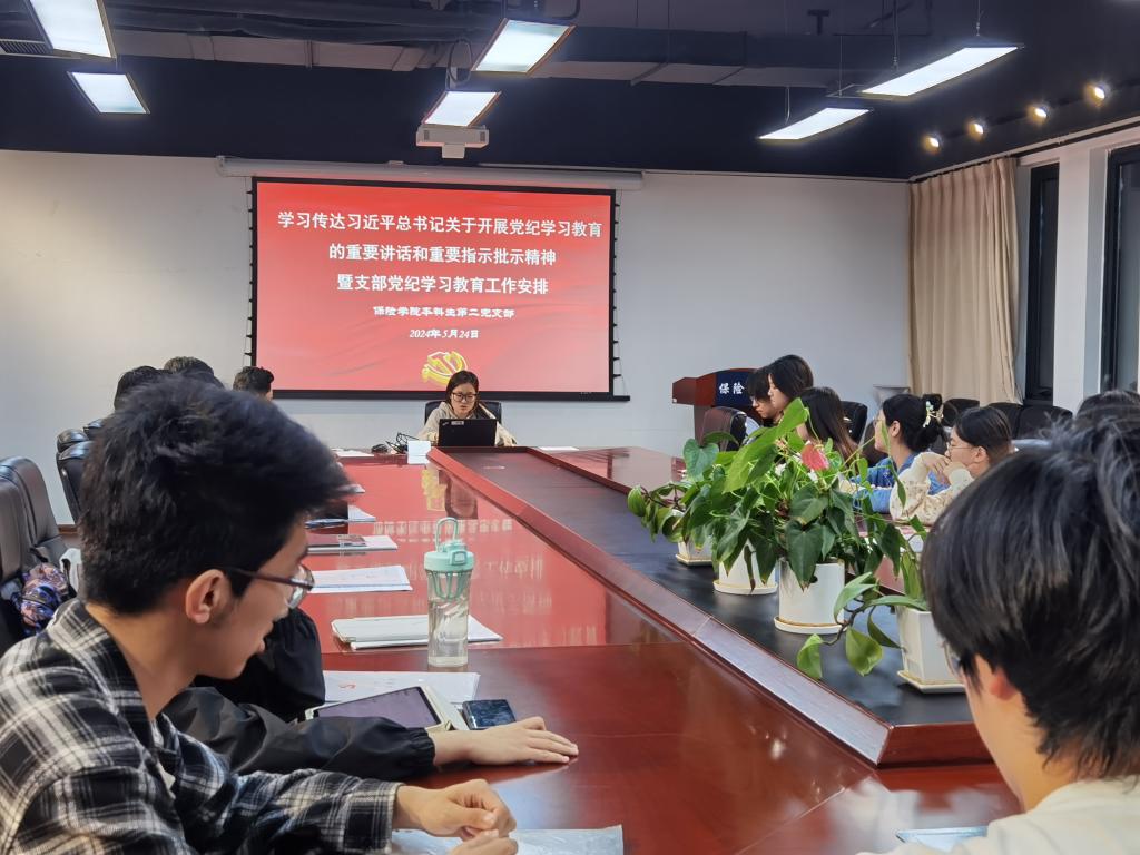5月24日,本科生第二党支部于13号公司楼215会议室召开支部大会,支部书记秦然向支部各位党员传达了习近平总书记关于开展党纪学习教育的重要讲话和重要指示批示精神及上级有关要求、公司党委关于在全校开展党纪学习教育的实施方案,以及公司工作安排,强调支部各成员要在完成完整通读《条例》任务的基础上,进一步逐章逐字学习研读,结合自身实际,长敲思想警钟、常紧纪律之弦。
