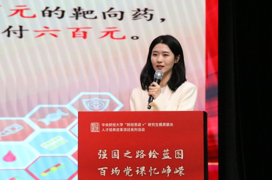 结合保险学科背景,邵淇解析DRG支付改革缩短住院时长、降低药费占比的实践价值,并分享家乡降压药价格降至二十年前五分之一的调研案例,呼吁青年党员投身智慧医疗等改革前沿。邵淇的微党课选题精准、逻辑清晰、数据翔实、情感真挚,将党的创新理论与国家重大民生关切、保险学科特色深度融合,展现了扎实的理论功底和强烈的家国情怀。