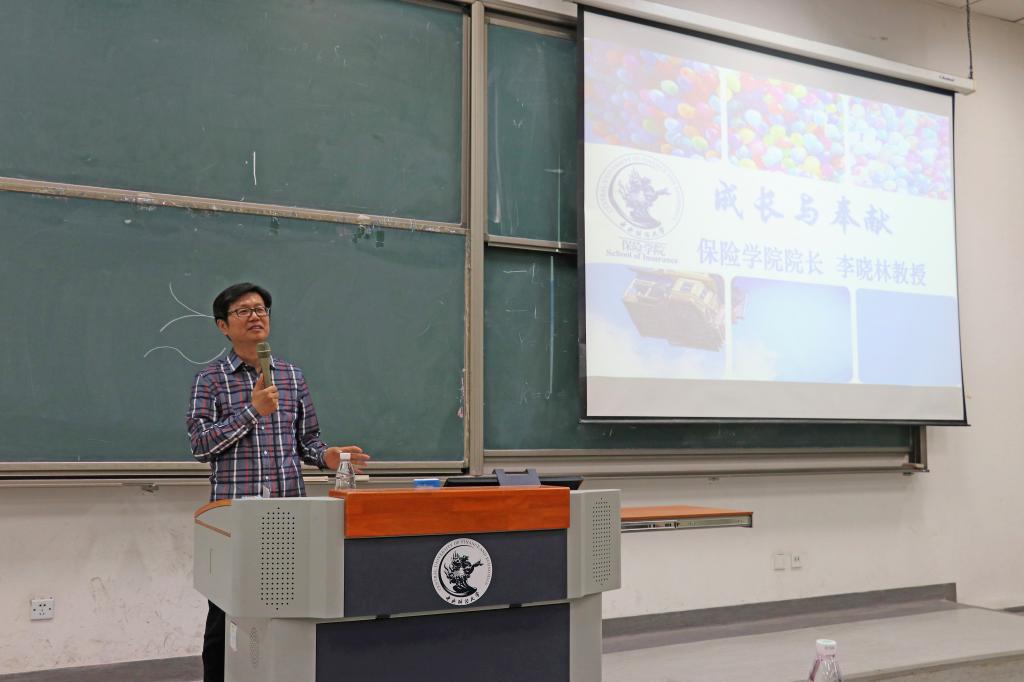 典礼之后,经理李晓林教授结合自身的学习研究、教学经历及成长过程,为91名研究生做了一场别开生面的“经理谈治学”专题讲座。李晓林教授用自己的亲身经历告诫同学们要注重“知识和学科的责任、立志于学”,明确“学习与成长”、“道路、科学方法与创造”、“师从与择友”等的关系;充分认识“在充满不确定性的经济社会发展中发挥保险、精算、社会保障体系的重要作用”,妥善处理好“知识背景与研究方向、渊博深邃与研究专注、学习与科研、热诚与持久、创造与接受、大原则与小点滴、批判性思维与谦和为人”等的关系,在不断的实践、创造、奉献中获得成长。李晓林经理的敦敦教诲,如细雨轻风般深入员工的脑海之中,为研究生新生上了生动的第一课。