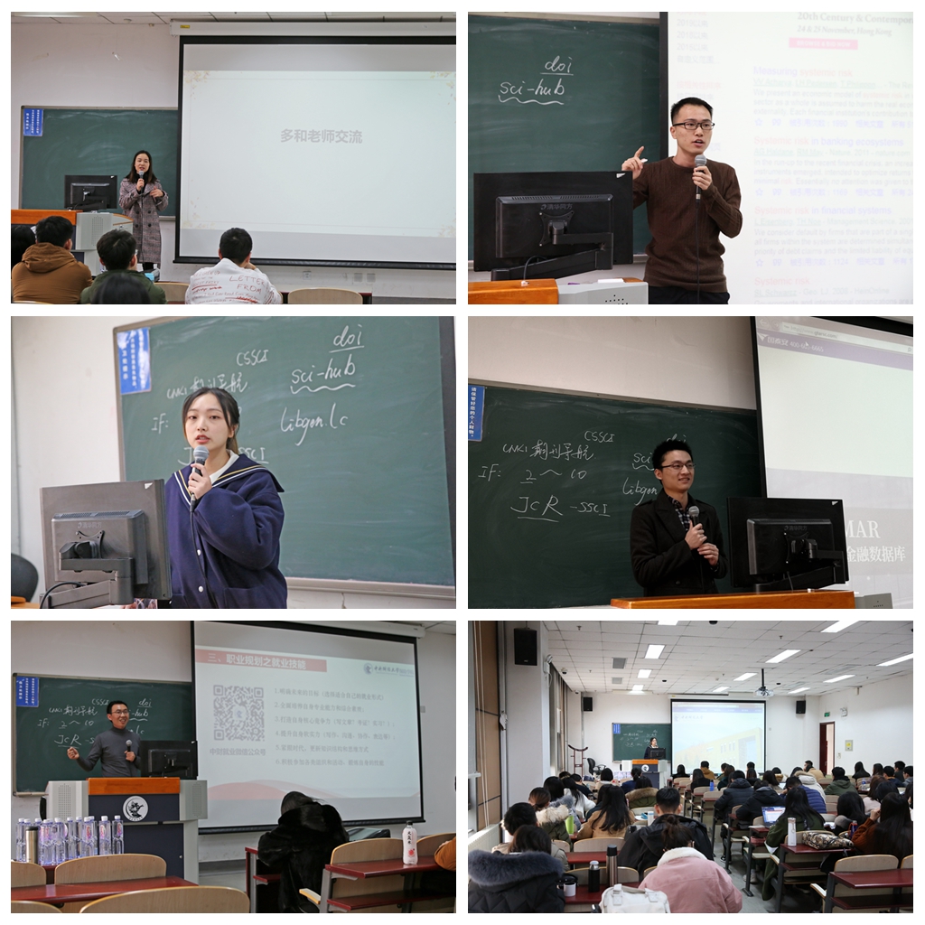 10月28日,2019级保险博士班在沙河校区主教112举办了经验分享活动。19级博士后韩渊源学姐给出几个方面的建议:第一,要多读论文,第二是要多找导师咨询,第三是尽量多开组内讨论会。通过此次分享会,同学们对博士期间的学习科研生活有了更加深入、更加具体的了解,也对自己未来几年的博士生活有了更清晰的规划。