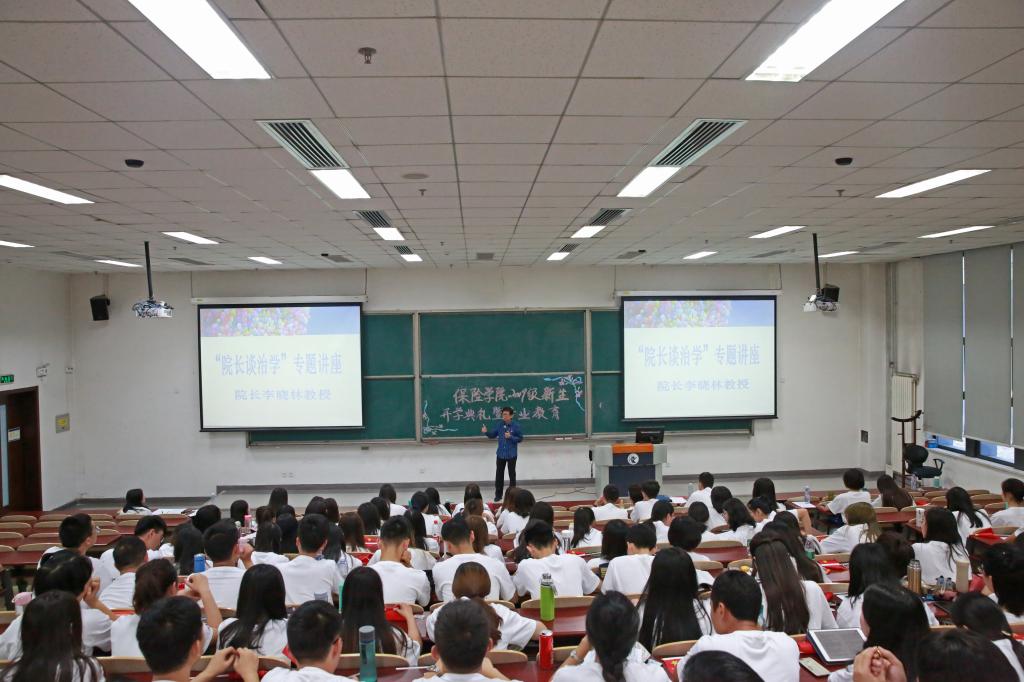 开学典礼后,经理李晓林教授为新入学的研究生们进行了一场别开生面的“经理谈治学”专题讲座。李晓林教授用自己的亲身经历告诫同学们要明确自身肩负的责任,立志于学,充分认识保险、精算和社会保障体系的重要性,妥善处理各方面的关系,在不断的实践、创造和奉献中获得成长;告诫同学们要紧跟时代发展,深刻认识风险演化规律,为时代做出自己的贡献。