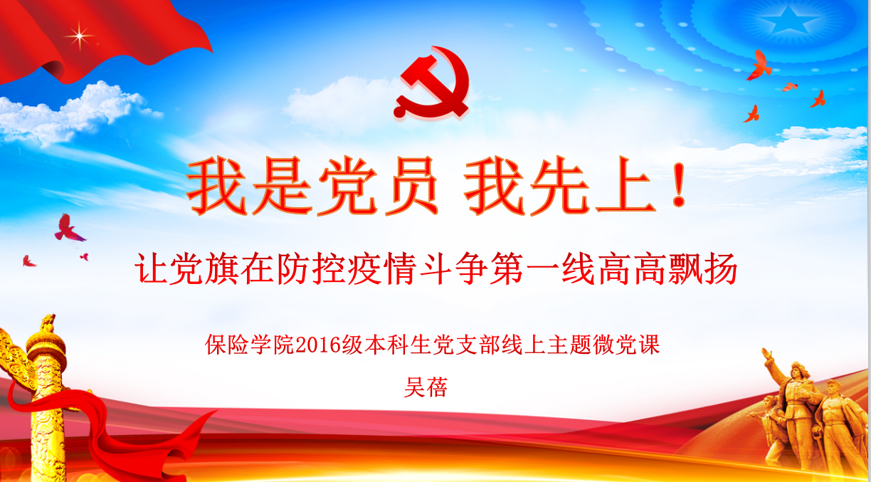 二讲担当,争当疫情防控的排头兵。传播科学知识,不信谣、不传谣,做好疫情宣传引导工作。这次疫情也让更多的人意识到风险管理、保险投入、社会保障的重要性,作为保险、精算、社保专业的党员,我们更应该利用所学专业知识,为抗击疫情做出贡献。