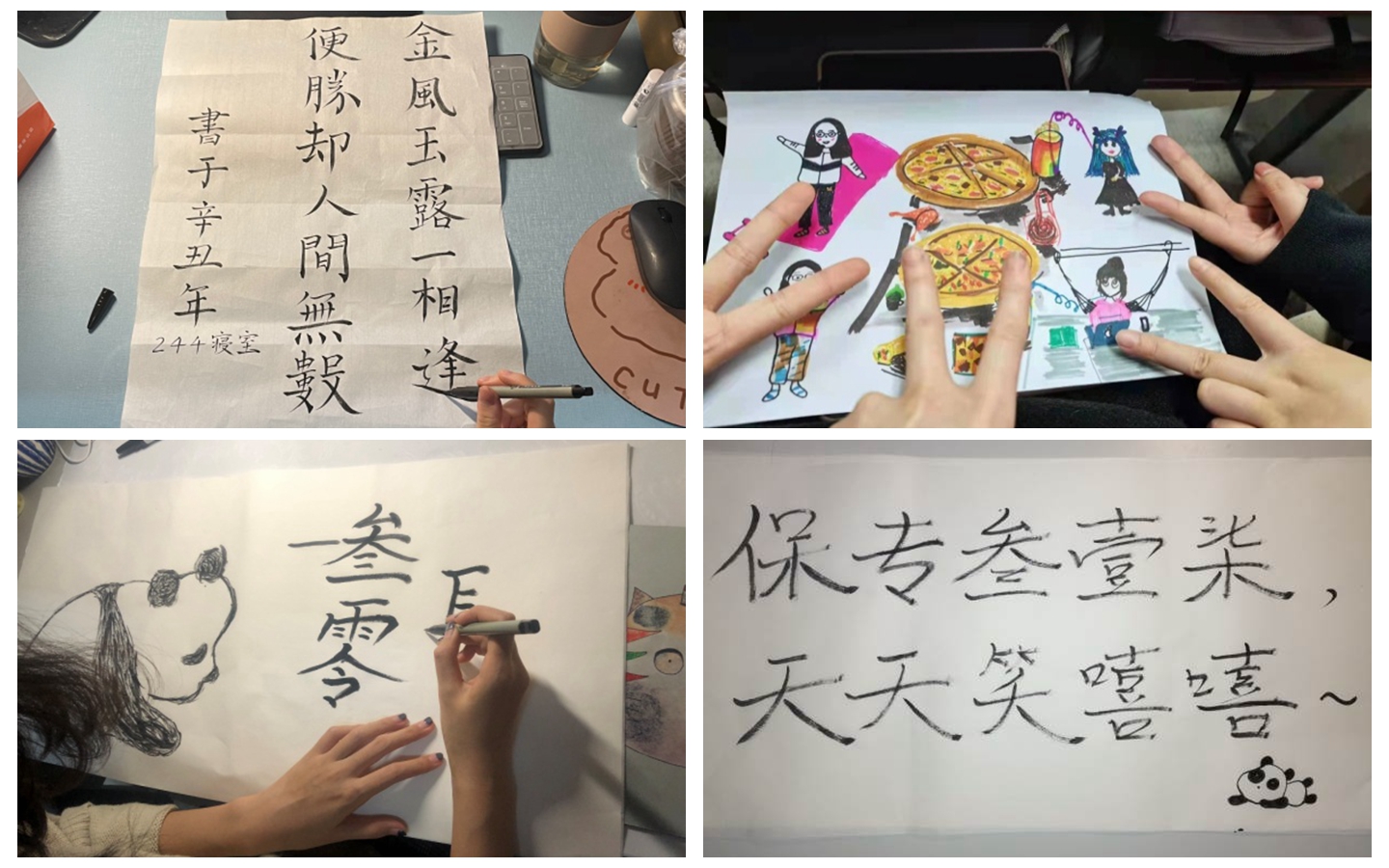 本次宿舍文化书画活动取得圆满成功。活动不仅加强了同学们对传统书法文化的体验感,更是通过实践总结了自己的宿舍文化,提升了宿舍的凝聚力,增强了班级的凝聚力和向心力。
