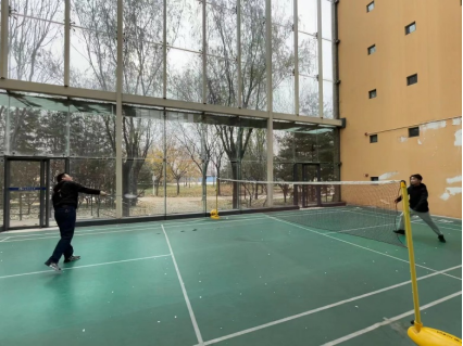 热身运动后,根据同学们的报名项目,分别进行了羽毛球赛和乒乓球赛。参赛同学们集中精力,全力以赴,其余同学在观赛时为参赛运动员加油鼓劲,场面十分热烈。