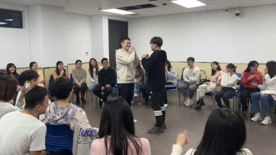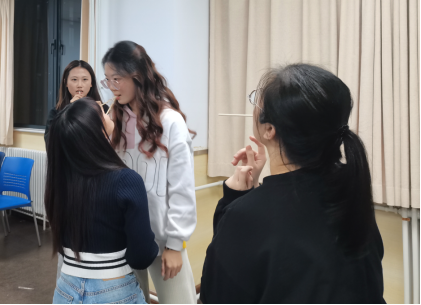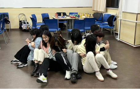 在组内游戏环节,为了让大家迅速熟悉起来,首先进行的是“抢数字”游戏。组内同学按顺序报数,当两人同时抢报一个数字时需要迅速说出对方的名字,否则将接受吃柠檬或芥末奥利奥惩罚。此外活动还设置了“串名字”游戏以此加深对彼此的了解,每一位同学需要重复前面所有同学的姓名、生日以及家乡,用时最长的小组接受“背对背拥抱”挑战。从陌生到相识,从尴尬面对到尽情嬉闹,十月微凉,这里温暖如春。