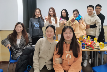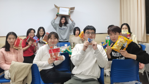 游戏全部结束之后,整个破冰活动也接近尾声,4个小组按照积分排名依次挑选班委事先准备好的四种主题零食大礼包,大家在欢呼声中分享礼品,快乐的笑容也在相机中定格。