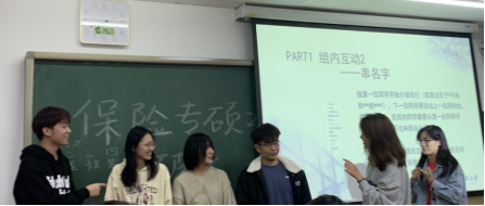 2022年10月14日晚,2022级保险专硕在公司楼13号楼321开展了第一次主题班会,同时也是2022级保险专硕同学们的破冰活动。本次活动由班长兰书钦和张雨雯雯组织,旨在促进同学们之间的相互了解,进一步增强班级的凝聚力与向心力。活动上,全班同学分成四组,进行了组间游戏和组内游戏。