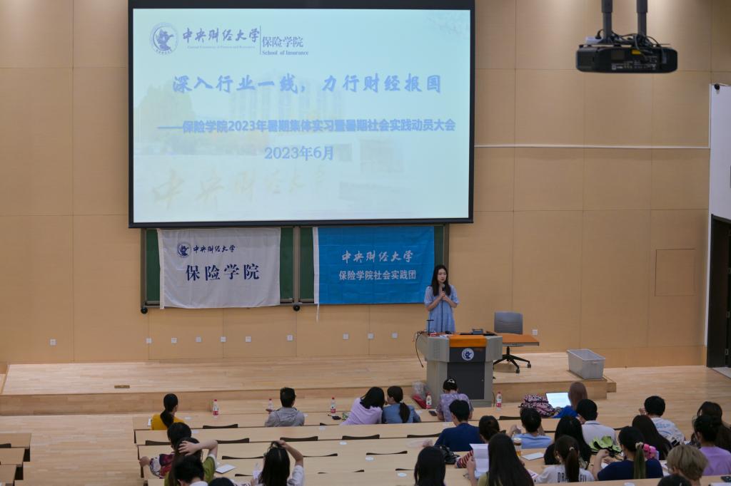 接下来吴蓓老师进行发言。她希望广大保险学子在暑期社会实践中主动宣传贯彻党的二十大精神,深入领会落实习近平总书记关于青年工作的重要思想,用习近平新时代中国特色社会主义思想凝心铸魂。在深入调查研究之中,切身感受保险行业发展,将所学知识与经济社会发展紧密结合,亲身参加行业观察、业务实践、特色交流、分享宣传等实践活动,深入了解国情社情,提升综合素质,用实际行动在以中国式现代化推进中华民族伟大复兴的使命任务中贡献青春力量。