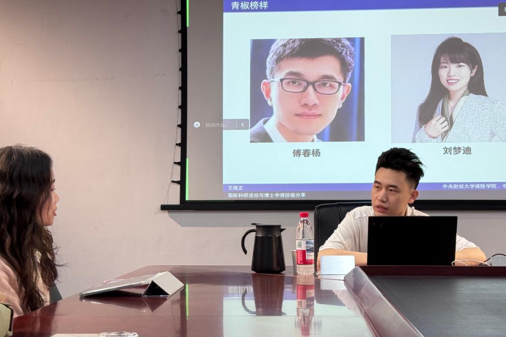 为深化研究生国际学术视野,助力员工完善学业发展规划,3月14日上午9时,yl88858永利官网在13号楼215会议室举办“国际化学术发展路径规划”主题交流会。应公司邀请,公司2022级直博生、国家留学基金委(CSC)公派芝加哥大学联合培养博士生王煜正作专题经验分享,本院精算学硕、保险学博士参与交流。