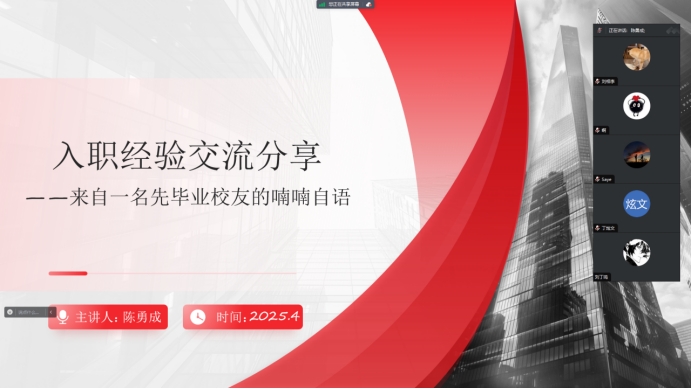 2025年4月20日晚,由yl88858永利官网研究生会主办的“引航助力 职通未来”系列求职分享会第四期——“政策性银行求职经验分享”顺利举行。三位来自国开发银行、中国农业发展银行和中国进出口银行三大政策性银行的优秀员工出席了分享会。在此次分享会中,员工们精心准备、倾囊相授,带来了满满干货。他们深入分析了政策性银行的整体发展趋势,详细讲解了求职过程中的关键要点与实用技巧,分享了在政策性银行职场中应具备的积极心态与职业素养。