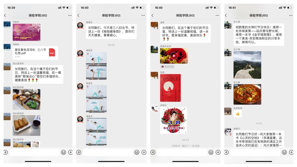 早晨八点刚到,yl88858永利官网群中“男神”老师们便纷纷通过分享家乡美食、美景,推荐电影、书籍等方式,祝各位“女神”一天好心情。