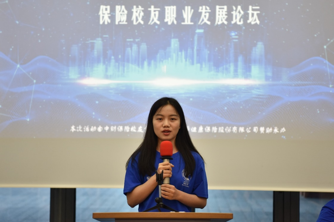 21级保险学硕赵青青作为新员工代表发言,她表达了对员工会举办这次活动的感谢,认为本次活动让大家获得了满满的归属感与集体荣誉感。