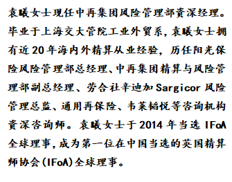 报告人:袁曦,FIA,英国精算师协会全球理事