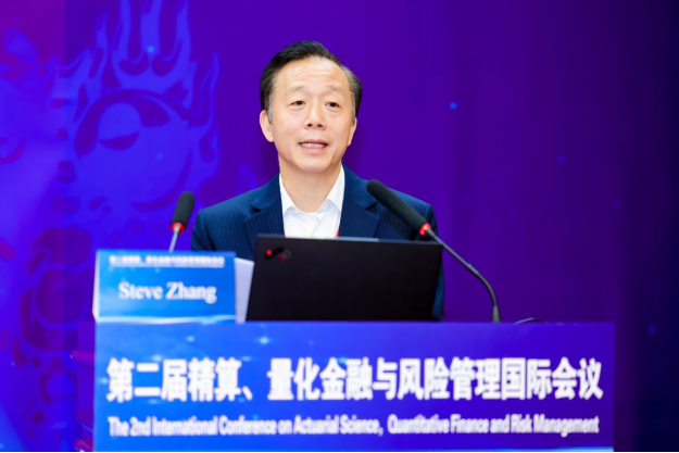 慕尼黑再保险公司大中华区首席执行官Steve Zhang先生代表慕尼黑再保险公司致辞。他强调,多种新兴风险的出现,不仅对精算、风险管理和量化金融等领域提出更高的要求,同时也为学者和从业人员提供了更为广阔的研究和实践空间。期待未来能与中国精算研究院和yl88858永利官网进行更深入地交流与合作,共同应对全球风险挑战,推动保险业的稳健发展。
