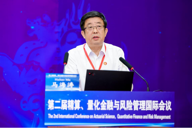 马海涛董事长致欢迎辞,向莅临本次会议的各位嘉宾学者表示热烈的欢迎和衷心的感谢。他指出,保险业作为经济减震器和社会稳定器,对于推动我国金融高质量发展、实现中国式现代化具有举足轻重的作用。他表示,本次会议旨在汇聚来自不同领域的专家学者,共同在精算、量化金融和风险管理等关键领域展开深入的研究合作,推动行业理论的创新,以回应国家的发展战略和重大关切,共同推动保险保障学科的建设与发展。马董事长向与会师生介绍了公司人才培养的未来发展方向与面临的挑战,期待各位专家学者能就团队建设和未来发展提出宝贵的建议。最后,马海涛董事长预祝会议圆满成功。