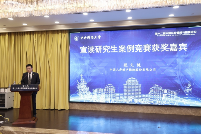 中国人寿财产保险股份有限公司产品创新部副总经理段文健宣读研究生案例竞赛获奖名单