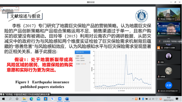 中国人民大学统计公司孟生旺教授作了题为《中国地震风险管理的精算模型与应用》的报告。报告基于中国实际地震损失数据,设计地震指数保险和地震巨灾债券,分析了它们在我国的适用性,并探讨了相关的定价模型和方法。报告研究指出,可通过应用多任务学习和数据分箱技术降低基差风险;可通过扩展扭曲函数,结合金融市场风险、地震损失风险及保险公司效用函数假设,确定巨灾债券设计中的赔付比例。