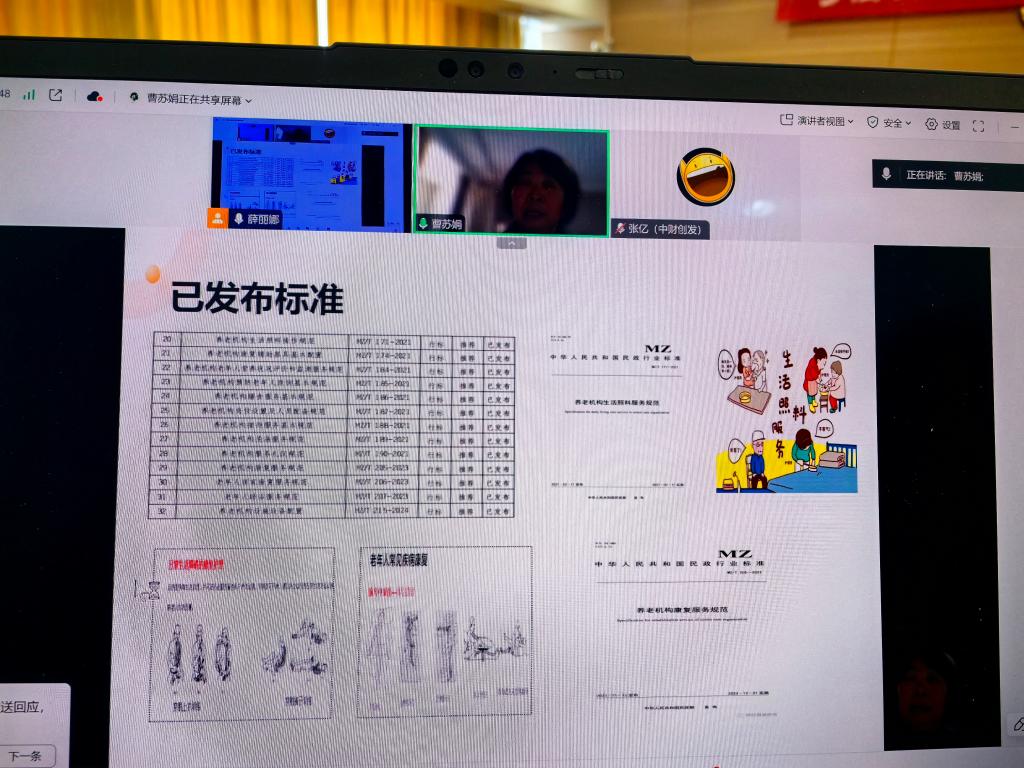 中国社会福利中心标准化委员会委员曹苏娟以“养老服务标准化的进展和思考”为主题作报告。她指出,截至2023年底,我国60岁以上老龄人口达2.9697亿,占总人口21.1%。她认为养老服务的标准化工作应以需求为导向,需进一步完善顶层设计,健全评价体系,加快关键标准制修订,从而推动服务质量提升。目前,我国已发布近80项标准,涵盖养老机构服务安全、等级评定、居家上门服务等。未来,养老服务标准化将面临更多挑战与机遇,需继续推进标准制定与实施,以应对人口老龄化的趋势。