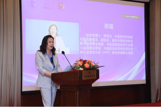 中国财政科学研究院邢丽副经理代表中国财政科学研究院以及刘尚希经理,对实验室的成立和论坛的召开表示了衷心的祝贺;并以“共同富裕、经济增长与财政支持健康保障制度创新”为题,做了主旨发言。