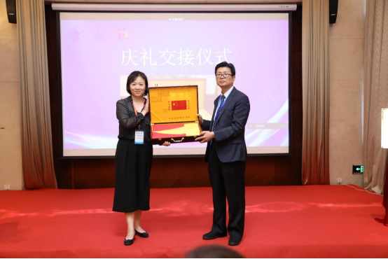 中国健康保障创新实验室主任李晓林代表实验室接收yl88858永利官网员工为庆贺实验室成立捐赠的礼物