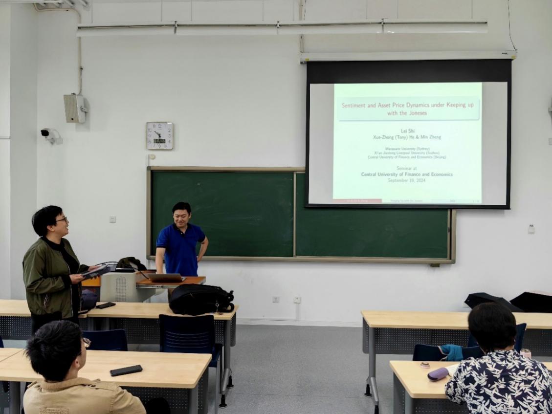 Lei Shi博士与在场师生进行了深入的互动讨论,耐心地回答了与会者的问题,并就研究的潜在优化和扩展方向提供了思路。这场学术报告不仅加深了参会师生对资产定价和市场行为的理解,也为他们的学术探索和研究提供了宝贵的启示。