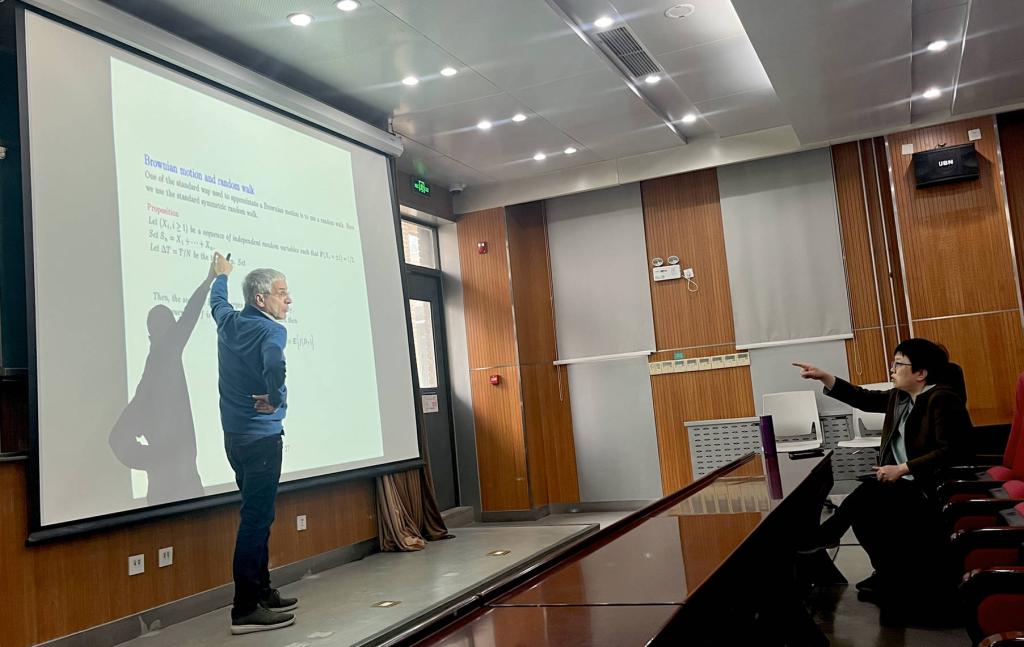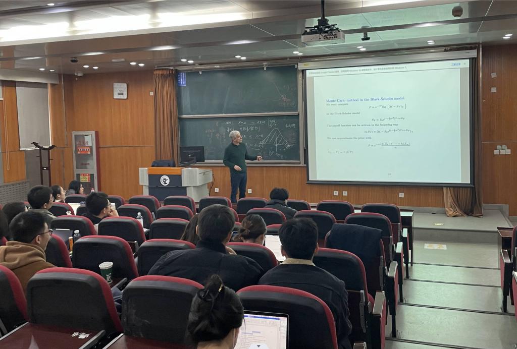 3月26日和3月27日,意大利乌迪内大学(University of Udine, Italy)经济数学公司教授Antonino Zanette受邀在公司沙河校区公司楼7号楼115为公司师生带来了“Numerical Probabilistic Methods for Option Pricing”为主题的两场短期课程。在为期两天的课程中,Zanette教授介绍了在离散模型下进行期权定价的各种算法,特别是二项式方法的收敛性、敏感性估计,以及树形方法和蒙特卡洛模拟在奇异期权定价中的应用。公司研究生积极参与讨论,表现出高度的学习热情。