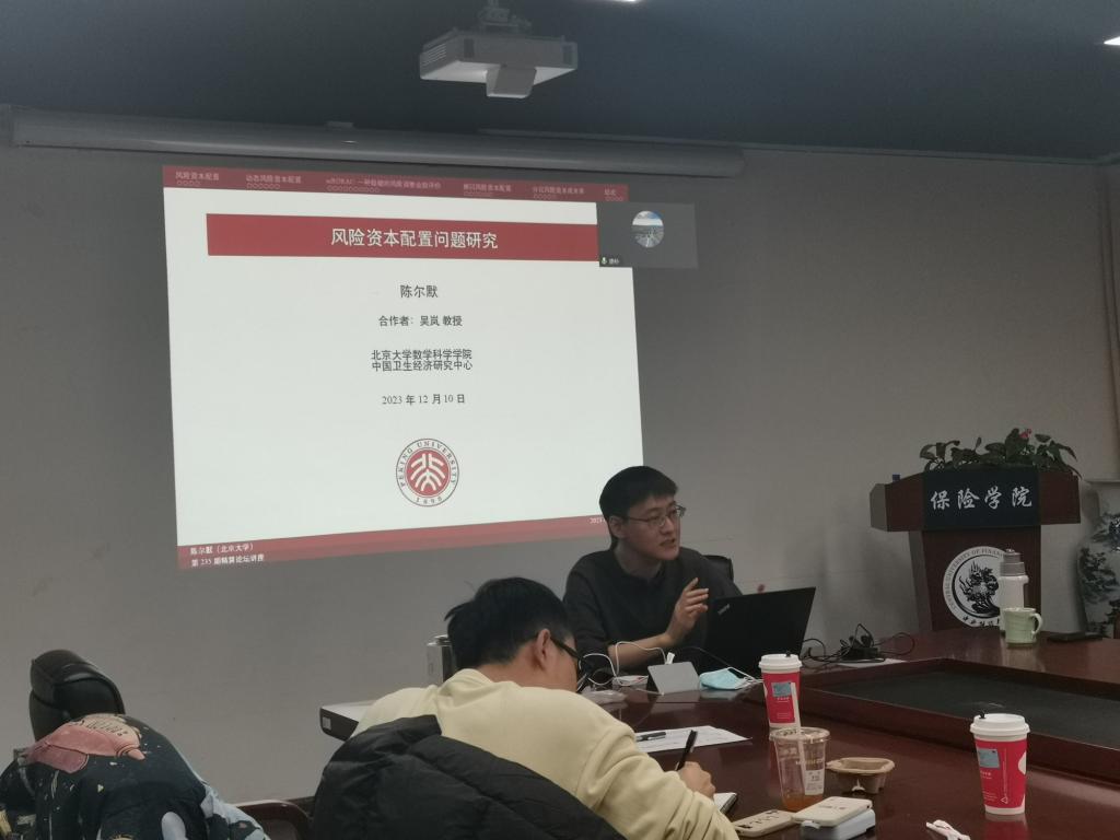 2023年12月10日下午,应中国精算研究院徐景峰教授和廖朴副教授邀请,安永咨询的胡盼女士、北京大学陈尔默博士、贵州财经大学的贺晔平副教授、河北工业大学的郑渊韬,在永利集团官网沙河校区13号楼215会议室给公司师生作了精彩的学术报告。郑苏晋教授、徐景峰教授、廖朴副教授等30余名本科生、研究生参加论坛、聆听报告。