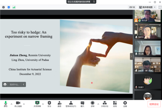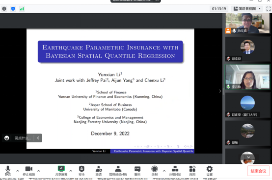 2022年12月9日上午09:00,应中国精算研究院池义春研究员邀请,中国人民大学财政金融公司助理教授郑家昆博士、云南财经大学金融公司李云仙教授和厦门大学经济公司金融系赵正堂教授在线上为公司师生和国内同行做精彩学术报告。本次报告由池义春研究员主持。