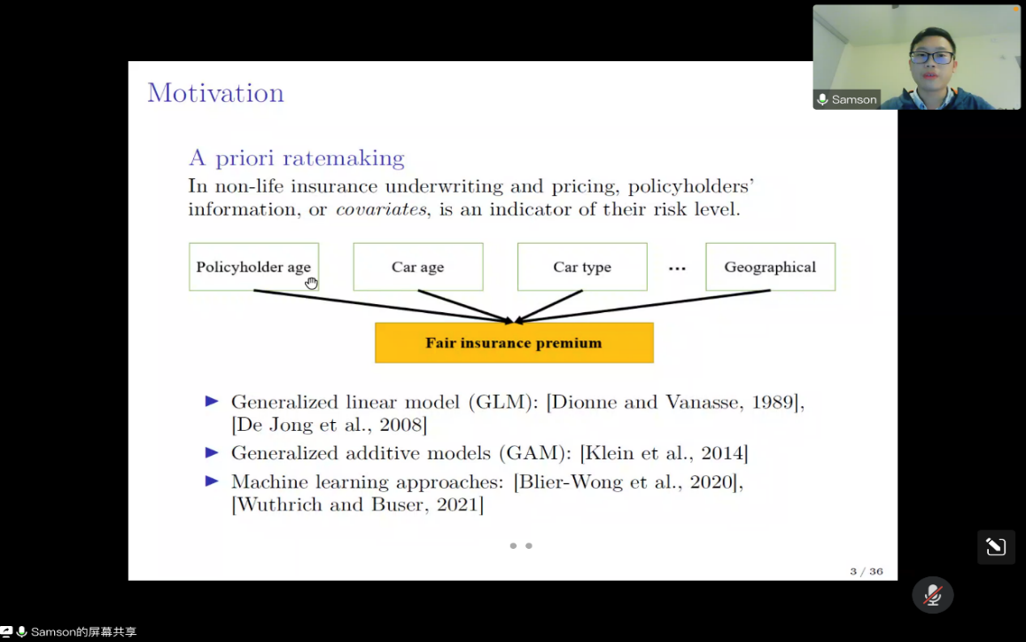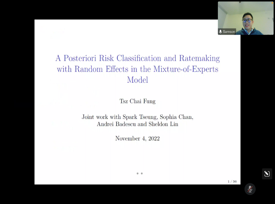 2022年11月4日上午9:30,应中国精算研究院池义春研究员邀请,乔治亚州立大学风险管理与保险系助理教授冯子齐(Tsz Chai Fung)博士在线上为公司师生作了一场精彩的学术报告。