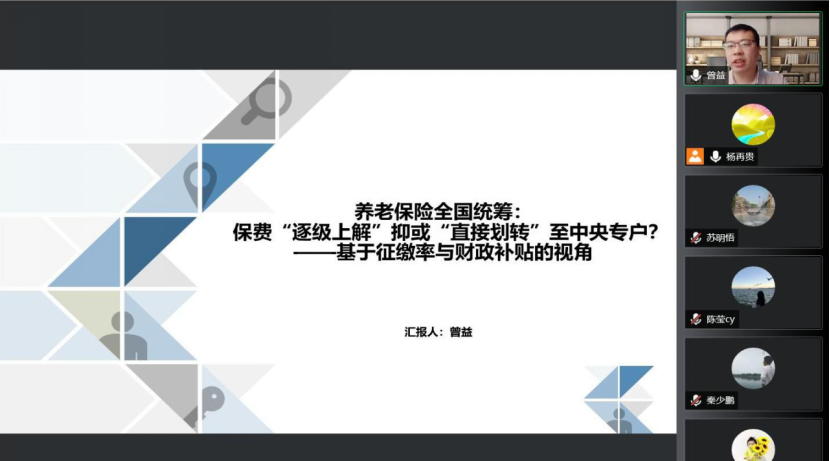 永利集团官网中国精算研究院于2022年5月31日邀请了中南财经政法大学公共管理公司曾益副教授做在线讲座。主题为养老保险全国统筹:保费“逐级上解”抑或“直接划转”至中央专户?本次讲座由永利集团官网中国精算研究院杨再贵教授主持。