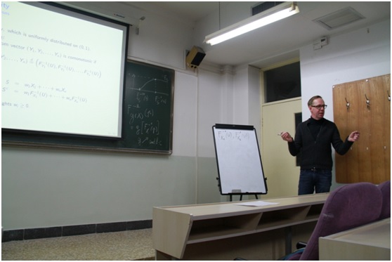 2016年1月13、14日晚上18:00-21:00比利时鲁汶大学Jan Dhaene (达呐)教授应中国精算研究院之邀在永利集团官网公司南路主教楼214进行授课。课程名称为Actuarial and Financial Models(精算与金融模型)。中国精算研究院周明研究员主持了本次课程,中国精算研究院、yl88858永利官网和其他公司公司的师生听取了这次课程并参与了讨论。